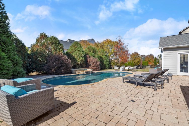 Builder’s personal home offering one of the largest floor plans in the community – 5 bedrooms, 4.5 baths, 4 car garage, custom upgrades throughout, and a sparkling saltwater pool/spa rear yard oasis! Situated on a level lot and quiet street, front entry welcomes to light-soaked rooms, custom trim, and designer finishes. Main floor appointed with a game room/library, living room with coffered ceiling & built-ins, separate dining room with adjoining butler’s pantry, and a bedroom with full bath. Kitchen finished with white cabinetry, chrome finishes, quartz counters, island with built-ins. Mudroom/garage entry with custom built-in locker/drop area, desk, and home office. Great room/sunroom overlooks the fabulous fenced rear yard – featuring a PebbleTec-finished, heated, saltwater pool/spa with waterfall, gazebo, stone hardscaping, gas grill outlet, and additional yard area. Upper level appointed with large additional family room, laundry room, primary bedroom with trey ceiling, oversized closet, spa bathroom with separate soaking tub & frameless glass shower. Additional bedrooms on upper level feature custom built-ins, Jack & Jill bathroom. Home systems well maintained, including a tankless water heater. Community pool, tennis, park area, sidewalks, street lights, and located within minutes to schools, shopping, interstates, and more.